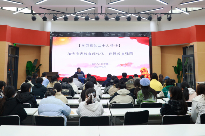 逐梦百年路,奋斗向未来。为深入学习宣传贯彻党的二十大精神,全面落实学校《关于组织开展上好2023年春季开学思政第一课的通知》文件要求,3月17日下午,我校副院长邱永建在智行书院多功能报告厅以《加快推进教育现代化 建设教育强国》为题,为智行书院师生上了一堂立意深远、思想深刻的思政课。