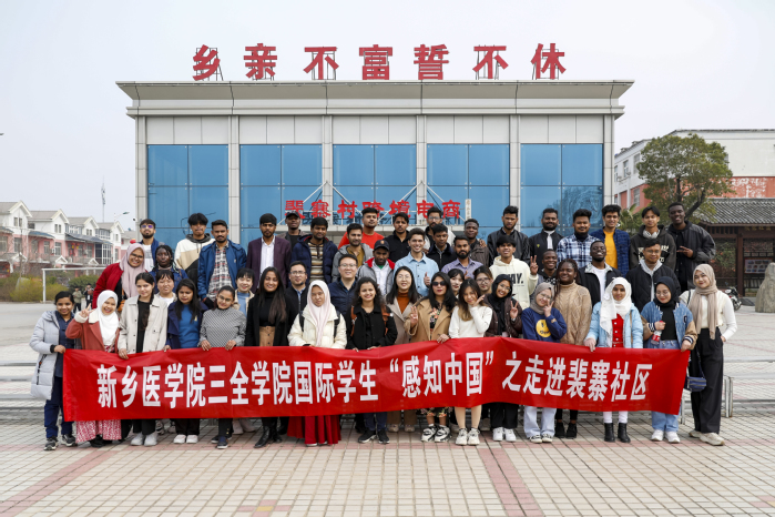 时光回溯,感知峥嵘岁月;初心不改,振兴美丽乡村。全体师生穿过“记忆长廊”,又来到了太行山的“明星村”——裴寨社区。国际学生们刚走到裴寨社区广场就惊呼:“这是中国的乡村吗?太不可思议了!”通过参观党建展示馆、观看宣传片,同学们了解了裴寨由落后贫穷、生活条件艰难到今天发展劲头高涨、人民生活幸福的奋斗历程,尤其是裴春亮书记带领大家共同致富的事迹让他们深受触动。来自坦桑尼亚的Gabriel动情地说道:“裴春亮书记帮助大家一起致富,是一个很了不起的人,我以后也要像他一样,帮助别人过上更好的生活。”