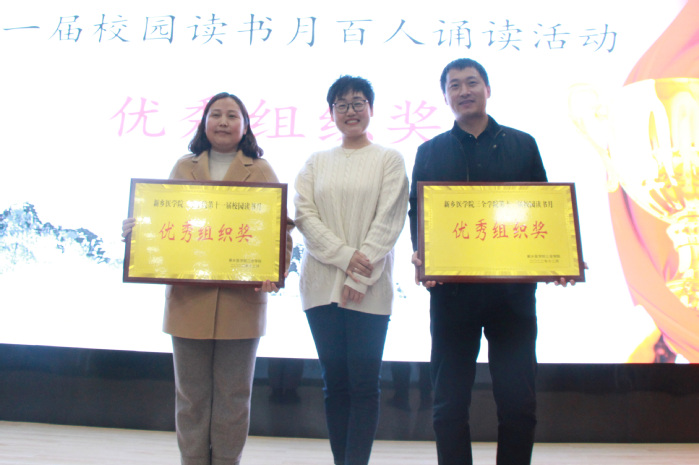 颁奖嘉宾分别为第十一届校园读书月“百人诵读”活动获奖集体及个人颁奖。其中,羲和书院荣获冠军,德馨书院荣获亚军,精诚书院荣获季军,崇德书院、仁智书院、智行书院荣获优秀奖,羲和书院、德馨书院荣获“优秀组织奖”,羲和书院申田裕荣获“优秀指导教师”。