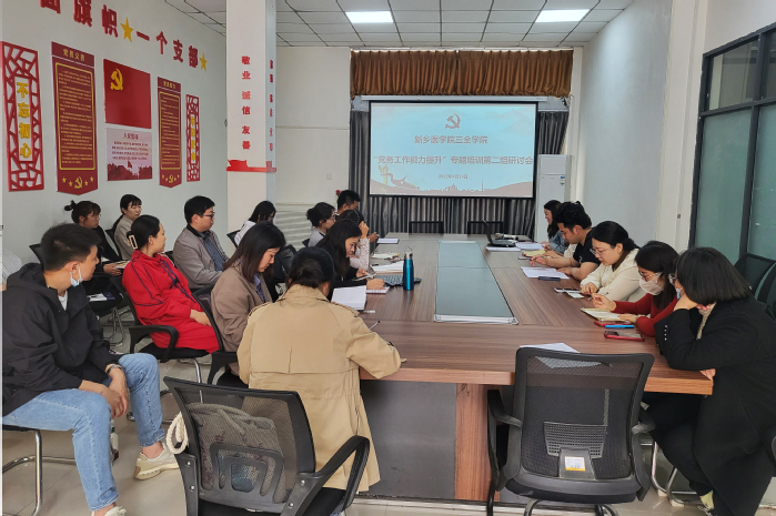 总支书记领学环节。各党总支书记结合《中国共产党章程》、《中国共产党发展党员工作细则》等文件,对《新乡医学院三全学院发展党员工作实施细则(修订)》进行了详细解读,并针对各总支党员发展工作存在问题进行了分析。