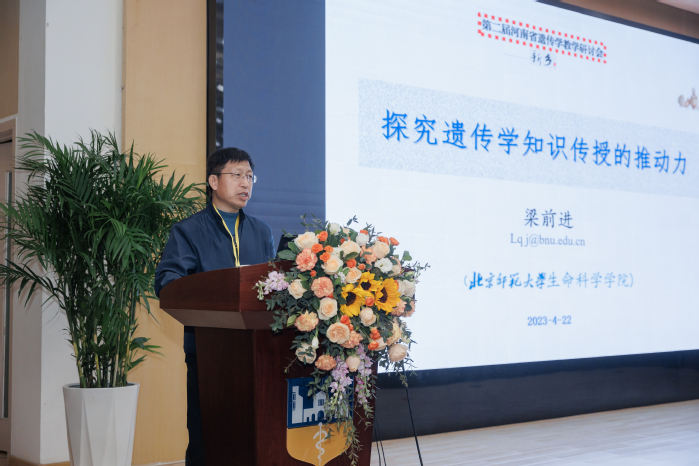 吴建宇教授致开幕词,他代表河南省遗传学会向莅临今天会议的各位领导、来宾表示热烈欢迎,向全体与会会员代表和同学们表示诚挚的感谢,并对此次遗传学教学研讨会的背景和基本情况进行了介绍。他表示,在国家大力推进教育教学改革的大背景下,作为生命科学的基础学科、核心学科---遗传学同样面临着改革、提升、创新的问题,希望大家在党的二十大精神指引下,高举团结奋进的旗帜,发扬求真务实的精神,努力拼搏,开拓进取,不断为遗传学科的发展和中原更加出彩作出新的贡献。