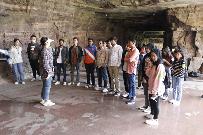 上午10点半,国际学生来到了被称为“世界第九大奇迹”的郭亮挂壁公路。走进绝壁长廊,廊内红石嶙峋刚毅遒劲在廊壁上方,十三壮士开凿长廊的剪影,生动地呈现出开山凿路时的艰辛与不易,国际学生驻足仰视,惊叹郭亮人民改天换命的决心与毅力。来自坦桑尼亚的迈克尔表示:“挂壁公路太令我震惊了!郭亮人民的奋斗精神使我深受感动。”来自印度的贾维斯表示:“这里风景很美,但是最吸引我的就是挂壁公路,郭亮人坚持不懈、开山拓路的精神很值得我们学习。