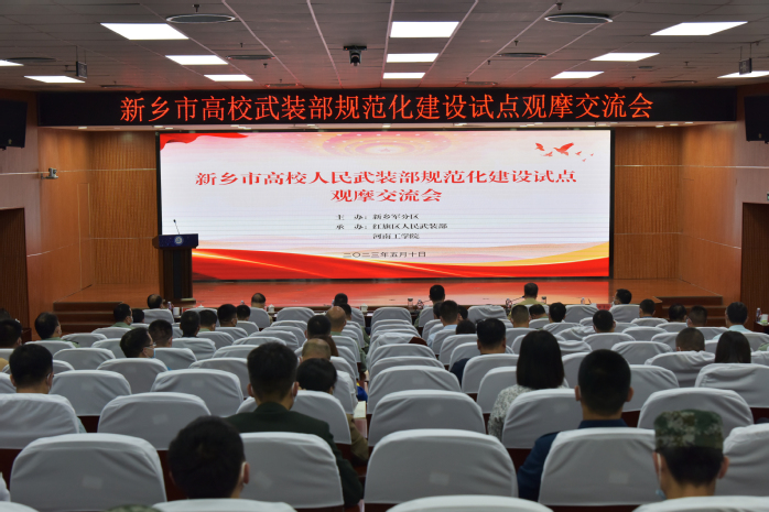 为深入贯彻《关于进一步规范普通高等学校人民武装部建设的意见》,拓展深化全省“四好”基层武装部创建活动,不断提高高校武装部建设水平,5月10日上午,河南省新乡军分区依托河南工学院组织开展新乡市普通高等学校人民武装部规范化建设试点观摩交流活动。军分区大校政委田巍、大校副司令员王双滨,军分区动员处上校处长耿秋生出席会议。我校副院长顾欢在会议上做典型发言。