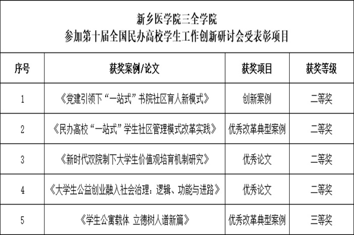 喜报:我校在第十届全国民办高校学生工作创新成果奖评选中荣获佳绩