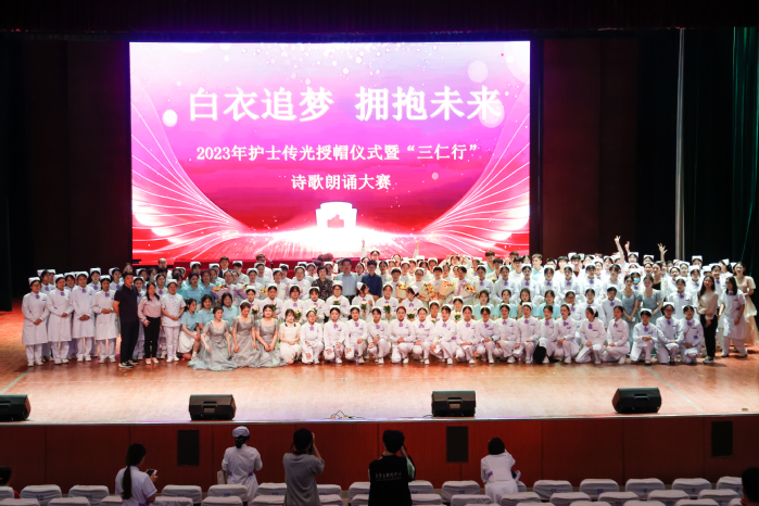 我校举办2023年度护士传光授帽仪式暨“仁心仁术仁德·三仁行”诗歌朗诵大赛