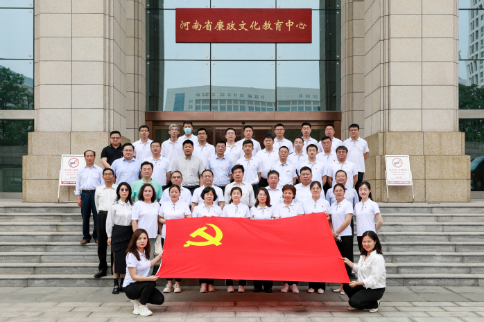 走进河南省廉政文化教育馆,熠熠生辉的党旗首先映入眼帘,全体党员面对党旗重温入党誓词,铮铮誓言在大厅里久久回荡。