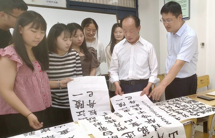 为落实学习贯彻习近平新时代中国特色社会主义思想主题教育相关要求,5月18日晚,我校副院长薛宏出席学生社团书画协会“溪亭角”书法大赛活动,调研指导社团工作,图书馆馆长华玉民、社团指导教师汪永涛参加活动。
