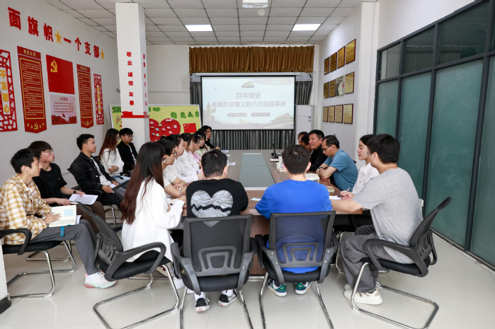 最后,马帅以“百年党史--最具历史意义的六次自我革命”为题,围绕“打铁必须自身硬是马克思主义政党的内生特质”“百年党史,最具历史意义的六次自我革命”“刀刃向内的自我革命永远在路上”三个方面为全体师生党员讲授专题党课。马帅从八七会议、古田会议、遵义会议讲到延安整风,从党的十一届三中全会拨乱反正、重新确立实事求是的思想路线讲到党的十八大后全面从严治党的一系列刚性举措,通过一个个历史事件生动诠释了我们党通过一次次革命性锻造,及时消除党内存在的矛盾和问题,从而更好地顺应时代发展潮流、适应社会变革要求。马帅指出,中国共产党一百年的历史,从党建维度而言,就是一部勇于刀刃向内的自我革命、不断炼就“打铁必须自身硬”功夫、永葆党的生机活力的历史。他深刻分析了党进行自我革命的重大意义和影响,并强调我们党通过自我革命,形成了一套比较完善的党的领导制度机制,为确保党总揽全局、协调各方提供了有力保证,党中央权威和集中统一领导得到全面加强,党作为风雨来袭时全体人民最可靠主心骨的地位和作用充分彰显。马书记语重心长地对与会师生党员说:“我们作为一名共产党员,一定要头脑清醒,立场坚定,敢于直面问题,以彻底自我革命精神检身正己,不断进行自我完善、自我提高,发挥我们党员的先锋模范作用。”