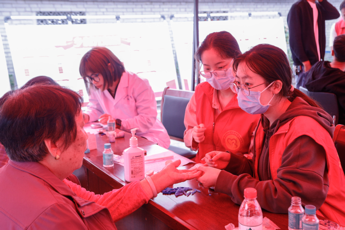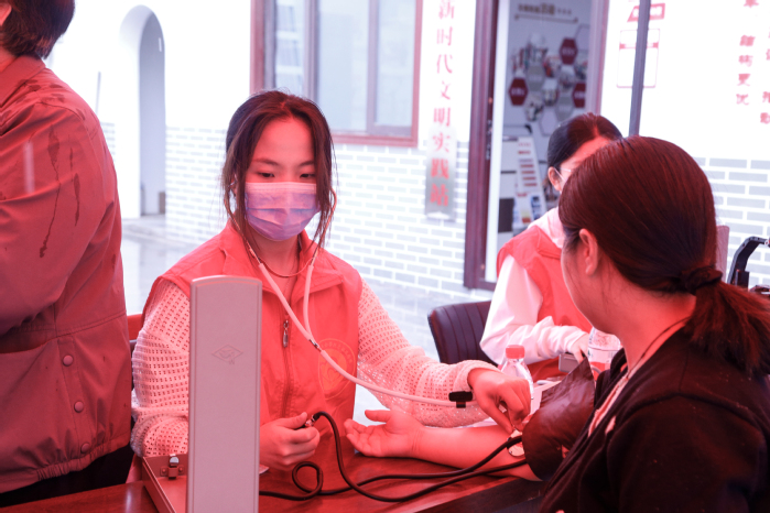 “大爷,做完心电图,可以让这边的内科大夫帮咱看看。”“眼视光检查啊,在会议室,来,我扶您进去。”义诊期间,桥北乡刘庵村的村干部也纷纷当起了志愿者,竭尽全力地为村民提供服务和方便。与此同时,三全学院的文艺轻骑兵们还为老人们送上了精心准备的《我和我的祖国》《我的中国心》《如愿》《唱支山歌给党听》《父亲》等耳熟能详的歌曲,精彩的文化大餐赢得了现场村民的阵阵掌声。