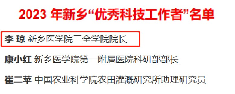 李琼荣获2023年新乡“优秀科技工作者”