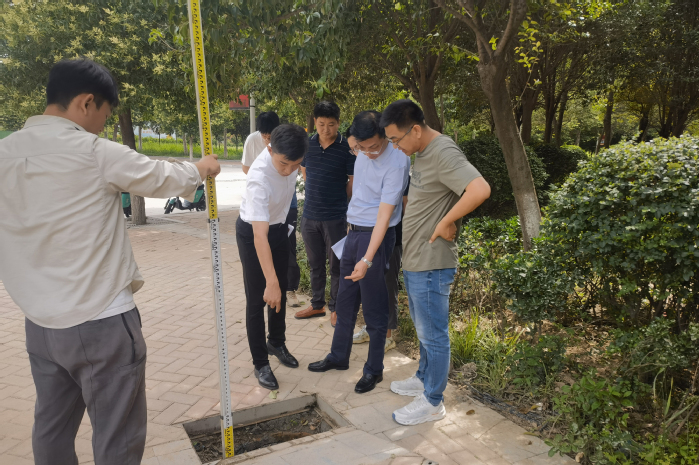 67日,防汛抢险突击队在总务部主任计剑、基建部主任李立超的带领下,针对校区内阻水障碍、险工险段、易积水区域、等重点区域实地勘察,每天登记排水标高,逐一排查排洪通道、建筑物周围、过水涵管等重点部位存在的风险隐患问题,对发现的安全隐患问题,现场下达隐患整改通知书,制定整改措施,细化整改方案,跟踪督促落实整改。并排查了校园周边道路、围墙等外部环境存在的一些安全隐患,突击队对排查了解的情况进行了详细登记,并针对存在的问题和安全隐患,有针对性地提出了解决办法和整改要求。