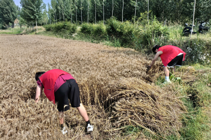 按照学校关于学习贯彻习近平新时代中国特色社会主义思想主题教育的安排部署,为激励广大学子在劳动中勇担新时代责任使命,5月底,智行书院面向全体学生发出积极投身夏粮抢收的劳动教育倡议,组建青年劳动志愿服务队,开展助农抢收小麦劳动实践活动。6月1日-5日,志愿者们利用天气转晴时机迅速行动,分头来到原阳祝楼乡新庄村、王禄村帮助当地农户抢收小麦,让“田间地头”化身为劳动教育的生动“课堂”和实践“基地”。
