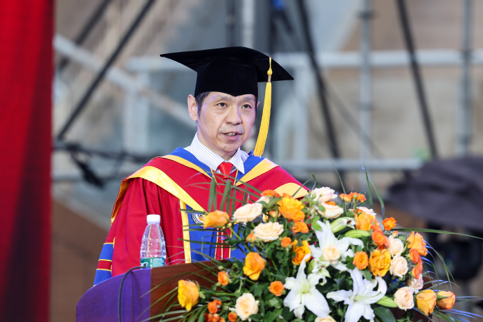 院长李琼教授向全体毕业生致辞。她以“在顺境中趁势而为,在逆境中破浪前行”为主题,回忆大学的青春点滴与学校的发展变化,对同学们离开表达不舍,也为他们学有所成、踏入社会或进入新的学习阶段感到喜悦。她寄语2023届毕业生:一要志存高远,脚踏实地。无论同学们未来从事何种职业,都要坚定理想信念。选择工作的同学,要爱岗敬业、脚踏实地,肯干事、能干事、干成事,在平凡的工作岗位上做出不平凡的贡献;选择继续深造的同学,在未来的学习、研究和生活中,要保持严谨求实的学风、脚踏实地的作风,努力使自己成为德才兼备、业绩突出的栋梁。二要坚持终身学习,并拥有独立之精神、自由之思想。教育是思想的拓展,知识的深化,视野的开阔,学习的脚步要永不停息;保持清醒的头脑,不盲目崇拜任何权威,以自己的思维方式来决策面对的事情;时刻保持清醒的头脑,珍视自己的智慧,不惧怕自己的观点独特,不断地拥抱创新。三要做一个内心有光的人。拥有善良、正义、担当的人,就是内心有光的人。善良与贫富无关、与学识无关、与职位无关,它存在于个心存善念的人心中;心怀正义,才能与不良的社会现象作斗争,维护正义,才能让邪恶无处藏身;担当是一种责任、一种境界,是“无须扬鞭自奋蹄”的品质,有对小家庭肩挑重任的气度,更有强烈的社会责任感和使命感。最后,她希望大家带着终身学习的使命进入下一段人生旅程,尊重职业,不负芳华,在面对生活的琐碎时也能看见诗和远方。