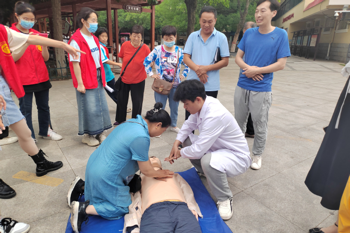 学生第四、第六、第十党支部联合开展“惠民义诊进姚村”特色志愿服务活动,学生第二党支部赴启明社区开展“守护生命‘救’救在身边”——急救知识宣讲活动。志愿者们通过理论讲解、案例分析、现场演示、解疑答问等方式,向居民们讲解了心肺复苏法、海姆立克急救法等应急救援常识,并分步骤进行了现场演示,居民们兴趣很高,纷纷上前提问并轮流上场操作,志愿者们一一耐心解答,并手把手指导。普及健康知识、提供健康咨询、指导科学预防疾病方法、免费测血压、测氧等服务得到了村民们的一致好评。