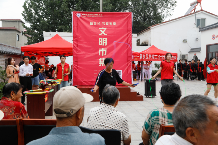 为深入开展学习贯彻习近平新时代中国特色社会主义思想主题教育,倡导健康文明新风,引导基层广大群众听党话、感党恩、跟党走,推动构建新时代文明新风尚,6月29日,我校联合桥北乡刘庵村开展文明市集活动。党委副书记马帅带队,党委宣传部统筹协调,党委办公室、学务部、护理学院、仁智书院等单位师生60余人参加。
