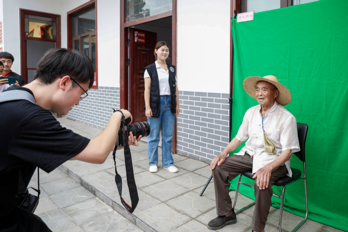 在老人拍照摊位前,我校大学生新闻中心的学生志愿者们帮老人整理衣服、教老人摆pose,为老人拍照。在大学生的带动下,老人们也从开始的拘谨逐渐轻松活泼起来,留下了这个夏天属于他们的最美笑容。“今天我在家门口的文明市集上拍了照、欣赏了节目表演、做了健康体检,感觉特别便捷,也非常满意,这些公益服务对我们岁数大、腿脚不方便的老人来说,简直太方便了,非常感谢三全学院这些志愿者。”刚拍完照的张厚山满意地说。