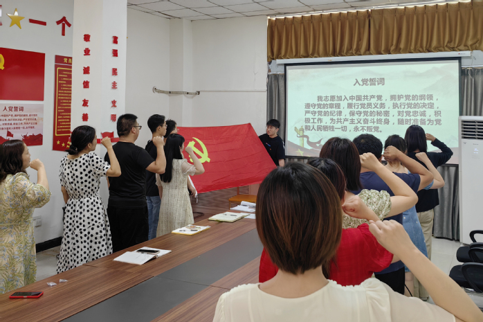 “我志愿加入中国共产党,拥护党的纲领,遵守党的章程……”,一句句铮铮誓言响彻德馨书院党员活动室。全体教职工党员握紧拳头,举起右手,面对党旗,庄严宣誓、句句誓词铿锵有力,掷地有声。