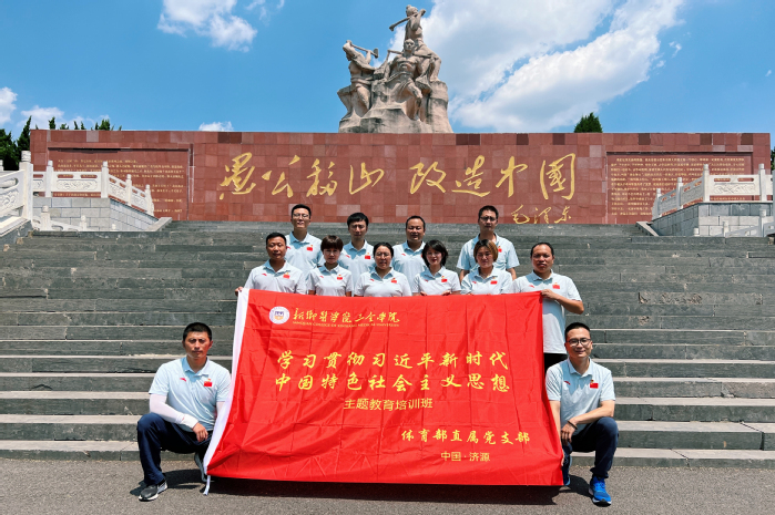 为深入开展学习贯彻习近平新时代中国特色社会主义思想主题教育,体育部直属党支部组织全体党员于6月30日赴愚公移山红色教育基地开展主题教育活动,聆听愚公移山故事,探源愚公老家,传承愚公移山精神。