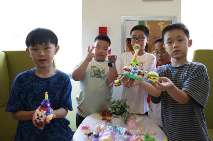 下午时分,在志愿者的带领下,小学生们来到了众创空间,共同开展手工创作、彩泥、绘画等趣味活动。