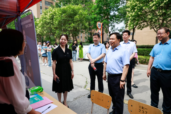 开幕式后,吕冰、李班一行在李庚、李琼等人的陪同下到招聘会现场与参会单位亲切交流,深入了解单位用人需求,并向现场工作人员和志愿者表达了亲切慰问。