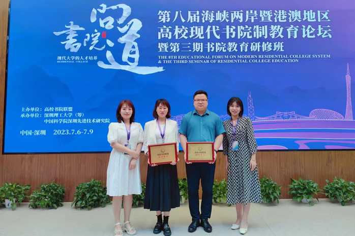 7月6日至7月9日,第八届海峡两岸暨港澳地区高校现代书院制教育论坛在深理工明珠校区成功举办,论坛以“现代大学的人才培养一一书院问道”为主题,共同探讨高校现代书院制教育的人才培养之道。会议期间,高校书院联盟理事会共审议18所高校书院入盟事宜,经现场答辩、理事会审议等环节,最终我校仁智书院、智行书院等12个高校书院成功加入联盟,并受邀参加高校书院联盟纪念雕塑点亮仪式,这标志着我校书院制建设正式进入跨校交流合作的新阶段。