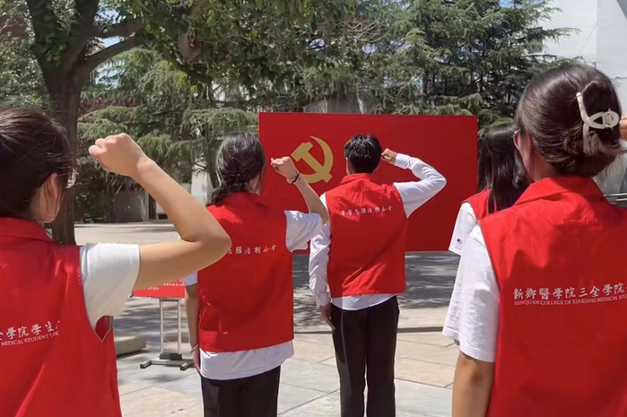 7月7日,实践队队员走进焦裕禄纪念园,在焦裕禄烈士墓前,全体学员怀着无比崇敬的心情举行了庄重的拜谒仪式,全体队员瞻仰焦裕禄烈士墓,深切缅怀追思焦裕禄。牛潇作为领誓人带领成员庄严宣誓,以奋斗践行“请党放心、强国有我”的青春誓言。