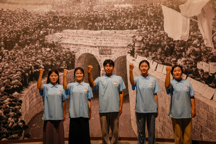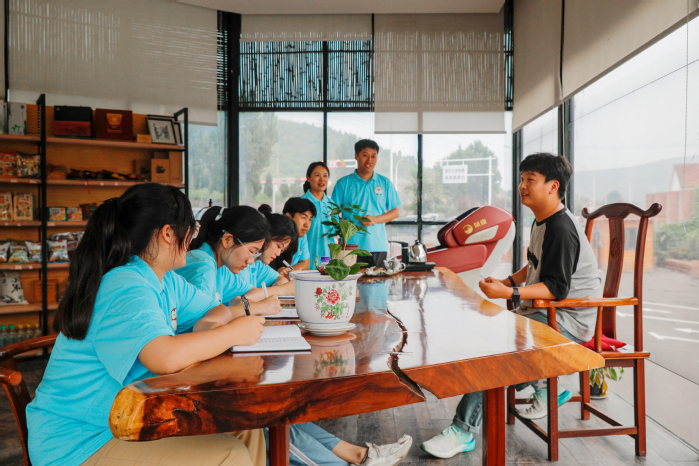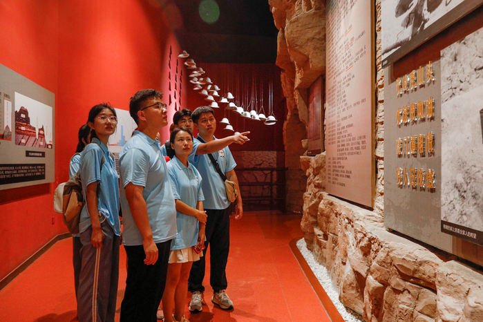 游学团队来到红旗渠红色教育基地风景区。首先,游学团来到渠上文旅,由渠上文旅负责人吴东泽为大家做以“青春寻访红旗渠,感悟红色印记”为主题的先导讲座,以导促学,以践促学。随后,游学团在红旗渠纪念馆参观学习,从一张张珍贵的历史图文资料、一件件锈迹斑斑的文物到一个个还原工程全貌的沙盘模型,游学团成员仔细学习、认真记录,感受当年林州人民为改变恶劣的缺水条件,干部身先士卒,群众团结一心,手拿凿具开山修渠,不畏艰难、艰苦奋斗的精神。最后,游学团成员在馆内进行了诗歌朗诵,以“诵”的形式来表达对红旗渠建设者的敬畏之情,同时也深刻感悟到习近平总书记视察红旗渠时重要讲话精神的深刻内涵。