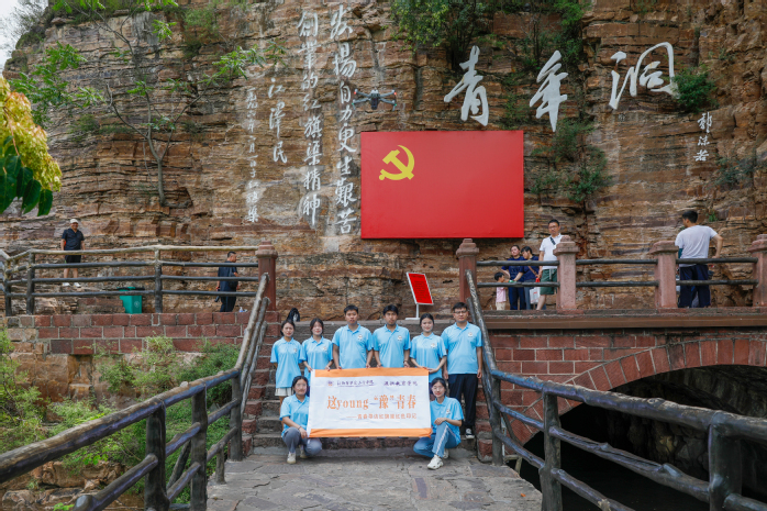游学团一步一个脚印沿渠徒步3公里,从大山之中穿越而过并在沿渠途中拍摄红旗渠的地域风貌;用脚丈量、用眼发现、用心体会,重温峥嵘岁月。游学成员沿张家领、创业洞、团结洞、一线天、玉皇顶、青年洞路线,领略测量渠线、修渠英雄雕像、劈开太行山等修渠遗迹,这些悬挂在太行悬崖绝壁上的红旗渠让游学团成员倍感震撼。在红旗渠总干渠的咽喉工程青年洞处,成员们追忆当年“十年青年十万兵,峭壁之上粗绳捆,一手持纤一手锤,凿穿悬崖得沟渠”的开凿场面,真切感受红旗渠工程的伟大与艰辛,切实领略到青年的使命和担当。