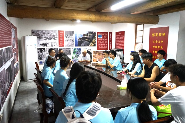 712日上午,团队前往了郭亮村太行民族博物馆、十三勇士展览馆,慰问了老村长申明凯、老党支部书记宋保群、乡村老教师宋留群,并在其带领下参观了当年修路的工具。参观展览馆,知开山凿路艰辛。慰问老辈人,明敬老尊师大德。修路先辈,永垂不朽,浩气长存,万古流芳,他们用浩然正气和崇高理想描绘出壮丽诗篇。先烈回眸应笑慰,擎旗自有后来人,实践团更应汲取郭亮精神,踔厉奋发,牢记校训使命,投身于社会主义现代化强国的建设中去。