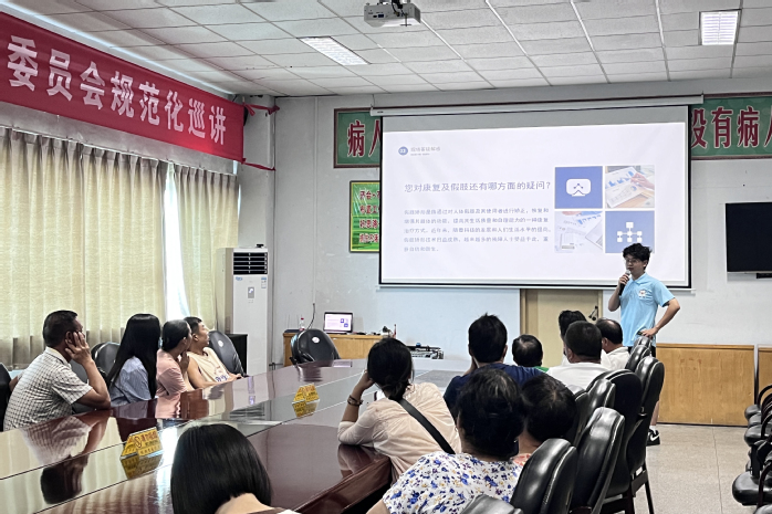 仪式结束后,实践团队在兰天的带领下参观了医院各科室及医疗仪器;聆听了医院康复科主治医师王小川结合自己临床工作经验所讲授的“当下医院康复治疗和假肢矫形器应用现状”专题讲座,并在他的带领下帮助患者进行康复训练、开展康复知识科普及院内600余位患者对假肢运用调研等实践活动,这些活动为团队接下来撰写调研报告奠定了坚实的基础。