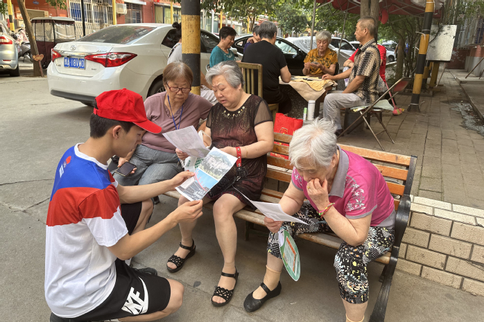 “一渠绕群山,精神动天下”在完成理论学习、实地研学后,7月13、14日,“青”风展红旗志愿宣讲队前往凤湖湾社区、杨柳湖社区展开志愿宣讲。成员们用生动鲜活的事例、直观详实的数据、充满活力的语言,围绕什么是红旗渠精神、红旗渠为什么能够修成、如何在新时代更好地弘扬红旗渠精神三个方面,深入浅出地讲述十万开山者,历时十年,绝壁穿石,挖渠千里,创造人间奇迹的历史,深刻阐释了红旗渠精神的丰富内涵。“一铲一锤一双手,在当时吃饭都成问题的年代,却建成了红旗渠这一世界奇迹,太伟大了,向建设红旗渠的前辈们致敬!”听完讲解后,社区居民感慨的说道。