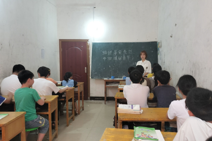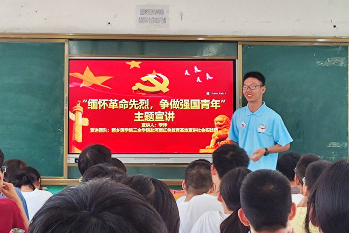7月20日,实践团前往镇平县第一高级中学和新野县蒙学苑教育中心开展党的二十大精神宣讲,激励青少年坚守信仰、砥砺奋进。镇平县第一高级中学学生谭琳浩说:“通过哥哥姐姐们的讲授,让我对学习党的二十大精神的重要性有了更加深刻的认识,我们一定做到哦听党话、跟党走,在艰苦卓越的奋斗中坚定理想信念,以百折不挠的毅力和勇气去实现我们的人生价值。”