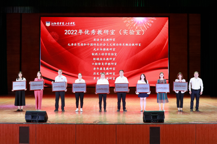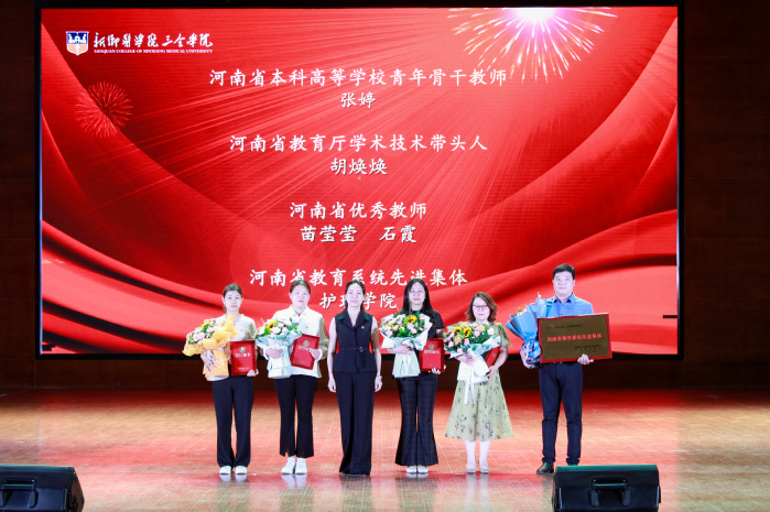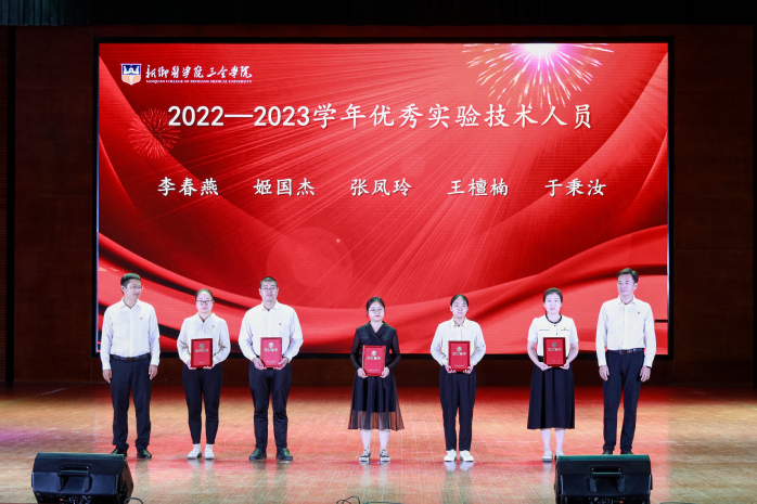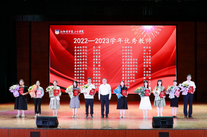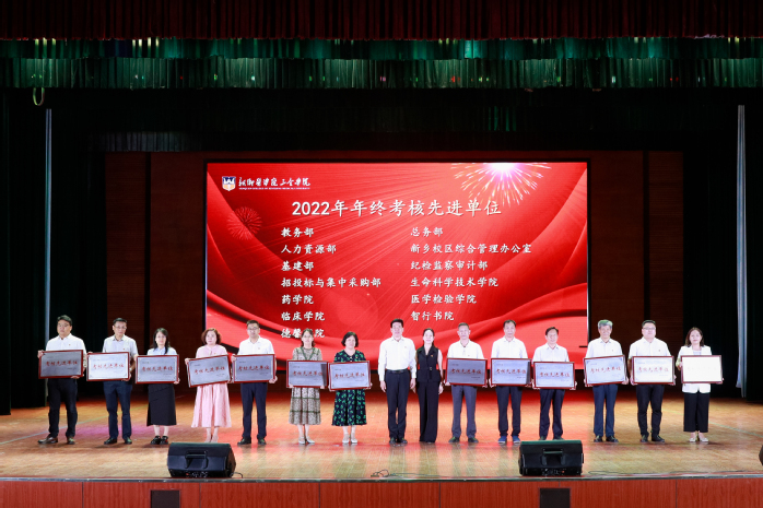 在雄壮激昂的国歌声中,大会拉开了序幕。大会表彰了2022年进步奖、2022年年终考核先进单位、2022年优秀教研室(实验室)、2022年度十佳人物、2022年度十佳辅导员、2022-2023学年优秀教师、2022-2023学年优秀实验技术人员、河南省本科高等学校青年骨干教师、河南省教育厅学术技术带头人、河南省教育系统先进集体、河南省优秀教师、新乡医学院三全学院特殊贡献奖等奖项。校领导分别为获奖单位和教师颁发荣誉证书。