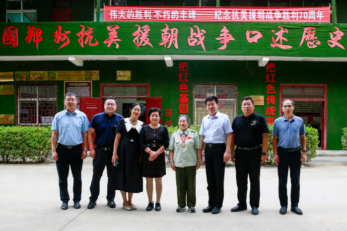 为纪念抗美援朝战争胜利70周年,国庆节来临之际,9月22日下午,我校党委书记李庚、党委副书记马帅一行来到中国郑州抗美援朝战争口述历史博物馆,走访慰问抗美援朝志愿军老战士,为他们送去节日的祝福。