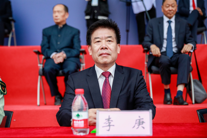 李庚向新乡军分区赠送“作风优良展军人风采、立德树人守育人初心”锦旗。