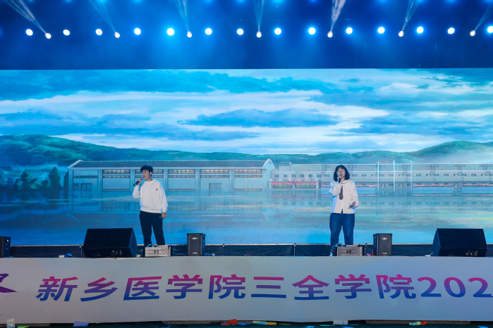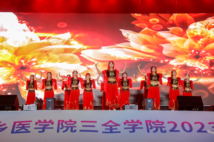 第二篇章“‘全’新发现”。小品《我的‘全’世界》用诙谐幽默的方式,展现了“全世界”多姿多彩的校园生活,演绎出了新生们进入大学、人生转换的青春时刻,呈现了医学青年的成长历程,鼓励大家在青春的赛道上勇往直前。随后新生代表上台带来歌曲联唱,舞台上下流动着无尽暖意,一首首耳熟能详的歌曲引得台下的观众一起轻声合唱,把会场气氛推上高潮。舞蹈《花儿为什么这样红》,踏着音乐的旋律展现婀挪身姿,时而静谧时而激荡,时而含羞时而奔放,舞出了三全学子的花样年华。
