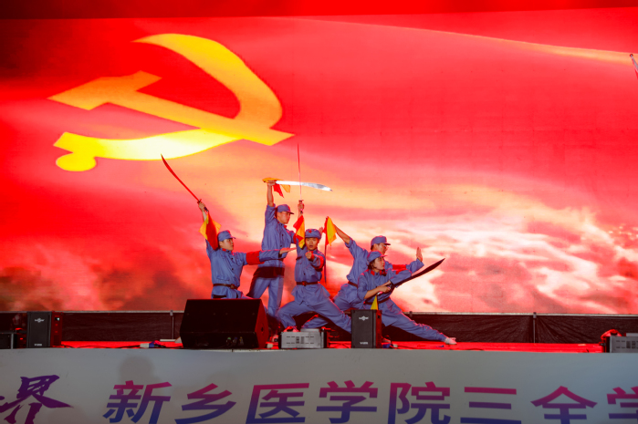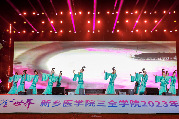 第一篇章“‘全’新世界”。“想见你,只想见你。未来过去,我只想见你”,一首《想见你》以优美的旋律,瞬间引来全场合唱,唱响2023级新生对大学生活的期待与畅想。舞蹈《木瓜》是校大学生艺术团舞蹈队的舞者们自编自导作品,《木瓜》出自《诗经》卫风,以轻盈舞步展现了牧野名城—新乡的历史文化,彰显了牧野青年积极向上的精神风貌。街舞《舞力全开》,激情澎湃、活力四射,绚丽的舞姿迸发着青春的活力,赢得台下师生的连连喝彩、阵阵掌声。