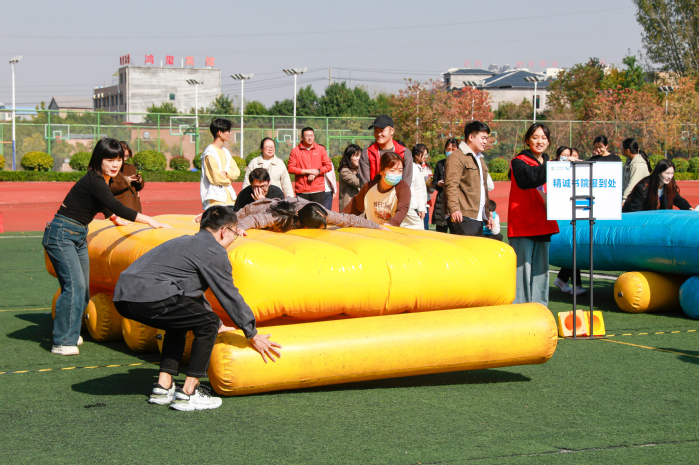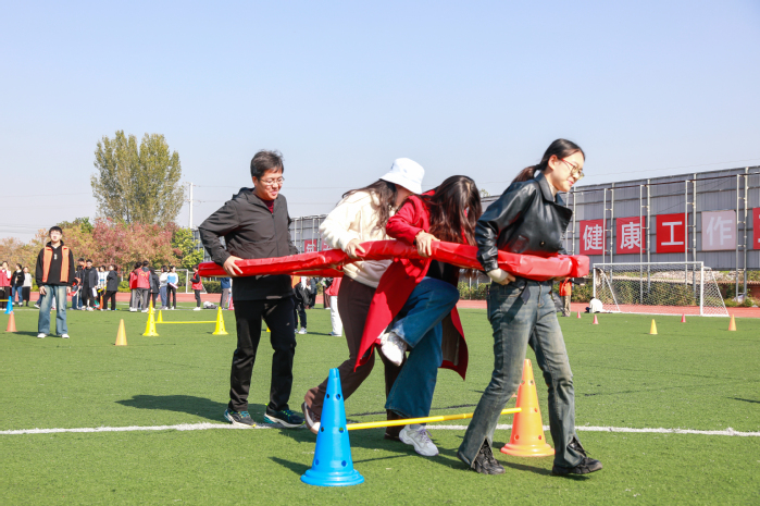 体育润建,趣味竞技。秉持“趣味交流第一,比赛竞技第二”的原则,本次运动分为乘风破浪、时代巨轮、云梯障碍、珠行万里、袋鼠运瓜五个项目。参赛的老师们斗志昂扬,奋勇争先,场下观战的老师出谋划策,加油助威,欢快的气氛席卷了整个操场。