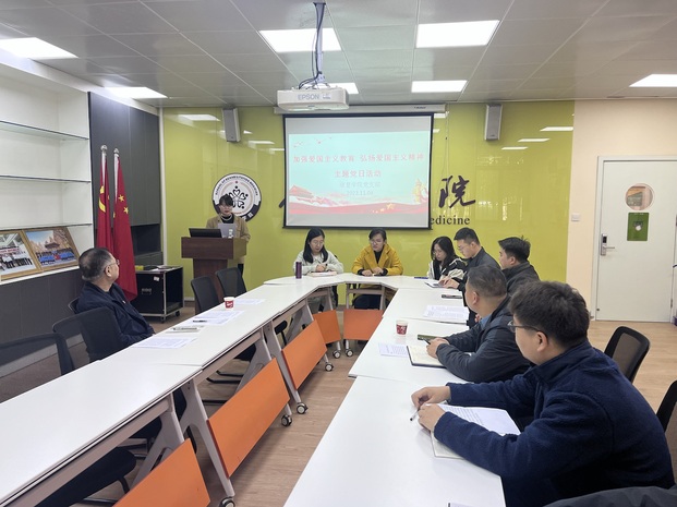 梅静向大家汇报党员到会情况、本月党费交纳情况及本月支部党员教师志愿服务活动开展情况。随后带领大家集中学习习近平总书记对宣传思想文化工作作出重要指示、《中华人民共和国爱国主义教育法》、《求是》杂志发表习近平总书记重要文章《开辟马克思主义中国化时代化新境界》等内容。她表示,高校党员教师要将爱国主义精神贯穿于教育全过程,引导广大青年学生把爱国情、强国志、报国行自觉融入坚持和发展中国特色社会主义事业大力弘扬科学家精神和专业精神,宣传和培育知识分子等胸怀祖国、服务人民、为国争光的爱国情感和爱国行为。