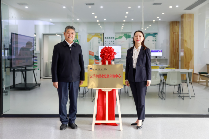 最后,王新生与李琼共同为新乡医学院三全学院大学生职业发展体验中心揭牌,并与名师工作室专家共同参观了我校职业发展体验中心。