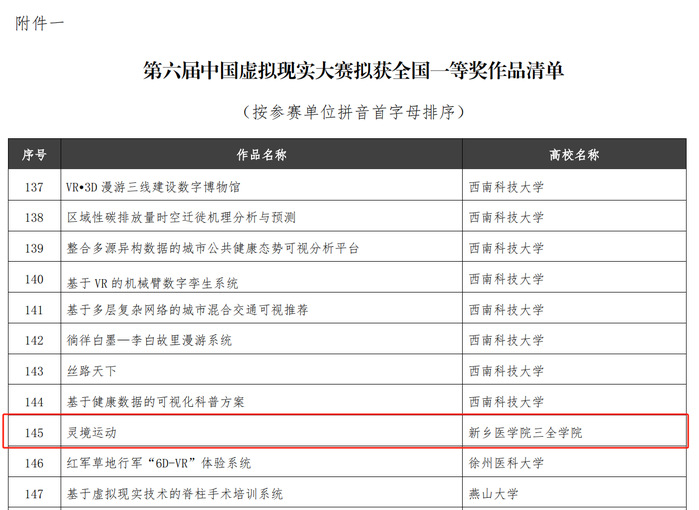 此次比赛成绩的取得,充分展现了我校虚拟现实专业学生的实践技能水平,检验和展示了我校教育教学改革的成果。近年来,我校高度新医科与新工科的融合发展,通过“以赛促教”和“以赛促学”相结合的方式,不断推动教学改革、专业建设,为培养具备时代发展特点、适应产业发展需求的高素质应用型人才打下坚实的基础。