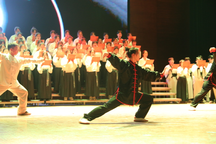 为积极响应习近平总书记在文化传承座谈会上的讲话精神,鼓励青年学子担当起推动文化繁荣、建设文化强国、建设中华民族现代文明的新的文化使命,我校图书馆举办了以“厚植书香底蕴,赓续中华文脉”为主题的第十二届校园读书月系列活动。12月7日晚,第十二届校园读书月活动闭幕式暨《百人诵读》比赛展演在闻德礼堂隆重举行。我校副院长薛宏出席,各书院、院(系、部)、相关职能部门负责人、教师代表及千余名学生参加了此次活动。