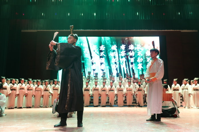 此次活动分为两个部分:六个书院的《百人诵读》比赛展演和第十二届校园读书月活动闭幕式。
