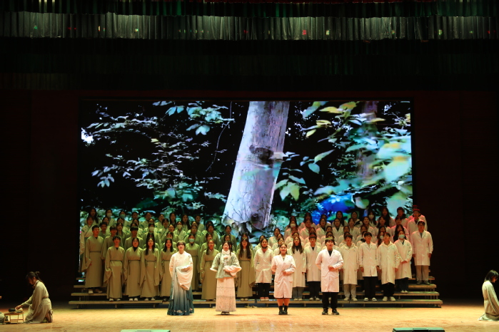 活动第一项,以“文明弦歌不辍,文脉延绵不绝”为主题的《百人诵读》比赛展演。党委宣传部副主任陈圆圆,药学院党总支书记、副院长李印省,检验与影像学院党总支副书记、医学影像学院副院长苗莹莹,健康管理学院党总支副书记、行政副院长陈东明,智能医学工程学院党总支书记、副院长陈继超,护理学院党总支副书记杨昕岳担任评委。六个书院以先秦诸子百家中极具代表性的六家思想文化为表演主题,以“百人诵读+艺术创作表演”的形式,用铿锵有力的声音和优雅生动的表演为现场观众带来一场震撼人心的视听盛宴,其中:崇德书院的《经典传世·百人诵儒》对应“以德化民”的儒家文化,羲和书院的《无为而治,道法自然》对应“无为而治”的道家文化,精诚书院的《墨家永兼爱,今者向其行》对应“兼爱尚同”的墨家文化,智行书院的《商君书》对应“信赏必罚”的法家文化,仁智书院的《纵横捭阖,睥睨天下》对应“足智多谋”的纵横家文化,德馨书院的《医家纵古今》对应“悬壶济世”的医家文化,展现出中华文明的源远流长和新时代青年人对文化的积极传承和发展。