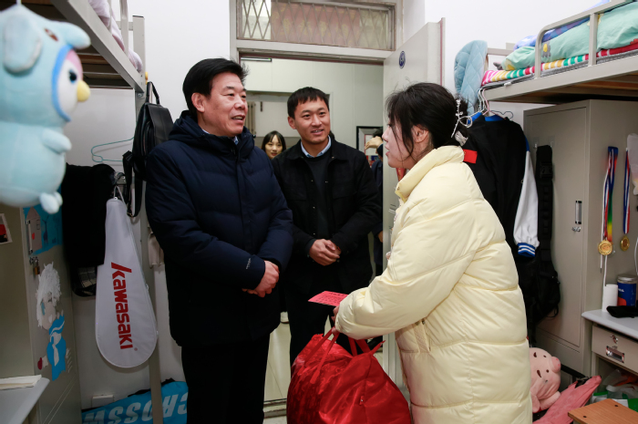 瑟瑟寒风,挡不住浓浓暖意;刺骨寒冬,抵不住慰问之情。一床床暖心的棉被、一张张温情的饮水卡、餐券、理发券,由校党委书记李庚亲自送到学生手中,他走进宿舍亲切地询问宿舍暖气是否正常,棉被是否够用,鼓励同学们:“一、要以积极向上的态度正确面对学习和生活中的挑战和磨砺,要志存高远、自立自强、勇于追求、不断拼搏;二、要常怀感恩之心,珍惜学校和老师对大家的关怀和帮助,懂得将爱心传递下去,用自己的努力帮助更多的人;三、要珍惜机会、努力学习、不断磨砺自己的意志,创造属于自己的奋斗青春,成为有理想、有担当、有抱负的有为时代青年。”同学们纷纷表示非常感谢学校的关心和帮助,时刻谨记老师的嘱咐和期望,永怀感恩之心、进取之心,努力提高自己的专业水平,将学校的这份爱心转化为实际行动,秉持感恩之心回馈学校和社会。