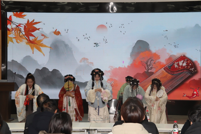 在统计分数间隙,崇德书院甘棠汉服社为大家带来了一段古筝表演--《兰亭序》。表演者身着汉服,将中华传统礼仪展示的淋漓尽致,她们的动作缓慢而优美,与古筝的旋律相得益彰,观众们沉浸其中,感受中华礼仪之邦的独特风采。