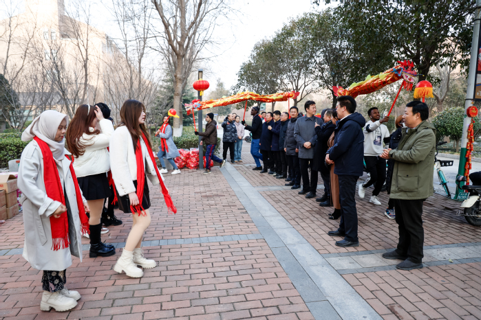 校领导来到国际学生公寓,了解留校学生的生活和学习情况,发放节日慰问品,表达新春祝福。他们鼓励大家利用假期多了解中华文化,做好中外科技文化沟通的桥梁。校领导和同学们互赠红围巾与龙年吉祥物,让国际学生感受到浓浓的中国年味儿。留学生们对留校生活表示满意,并进行了歌曲演唱与舞龙表演,春节气氛十分浓厚。