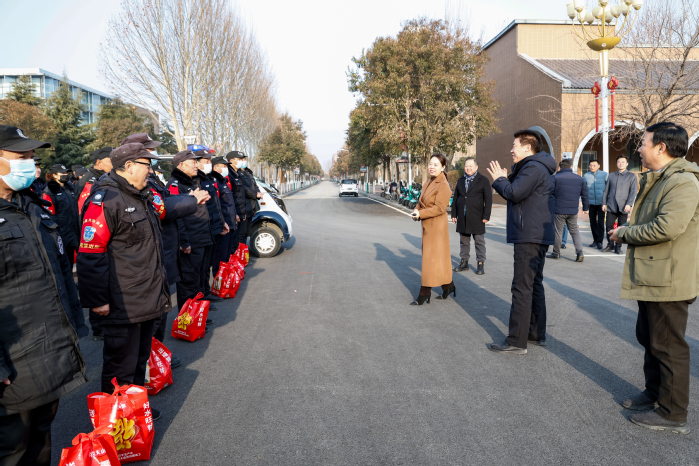 在郑州市第七人民医院和郑州市中心医院临床教学校区,教育总督导毛兰芝一行给学校值班人员带去慰问品,感谢他们为学校作出的积极贡献,祝愿他们节日愉快,龙年大吉。