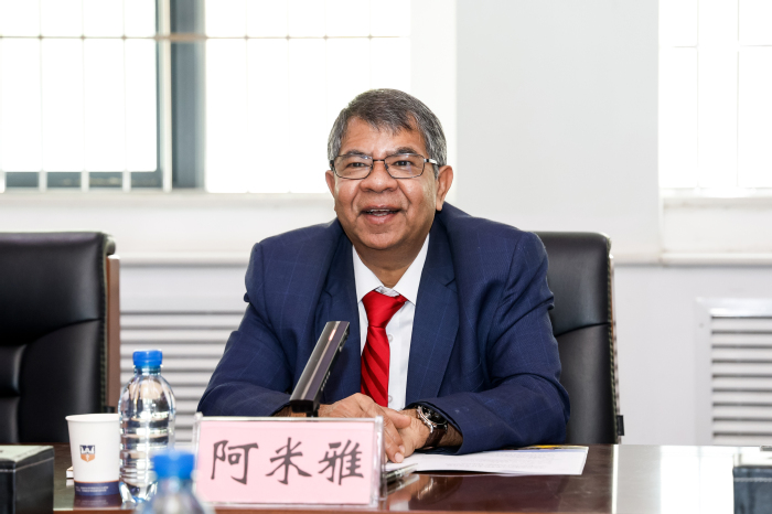 首先,李琼代表我校致欢迎辞。她对各位领导、嘉宾的到访表示热烈的欢迎。接着,她向来宾介绍了我校的发展历史、教育对外开放及科学研究所取得的成果。随后,她回顾了我校与林肯大学学院开展交流合作的历程。这是继2019年林肯大学学院拿督Bibi Florina一行人之后,林肯大学学院的领导第二次来我校实地参观。她表示,无论在办学理念还是在共同的发展诉求方面,两校均有较高的契合度。Amiya校长一行本次的到来,加速推动了两校国际交流项目落实落地。我们要以此为契机,发挥各自优势,在专业建设、人才培养、学历提升、科研合作等方面开展深层次交流,实现资源共享、优势互补、协同发展,共同谱写两校国际合作的新篇章。