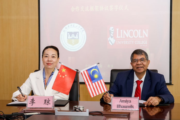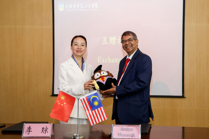 随后,李琼与Amiya代表两校签署国际合作协议并互赠礼物。紧接着,我校围绕生物与医药、护理和医学技术3个学科与林肯大学学院就硕士生联合培养、科研合作、实验室共建、本科生学分互认、师生交流互访、学历提升等方面进行了交流,达成了深度合作共识。